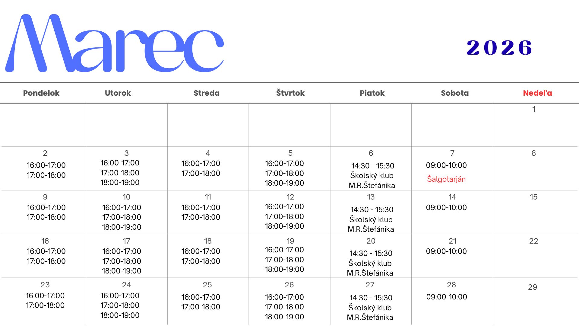 Najbližšie tréningy v mesiaci Marec 2026